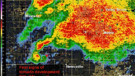Key Features in the Radar Loop: Several key features in the radar loop of the 2013 Moore Tornado are particularly noteworthy. One of the most prominent is the classic hook echo, which is a telltale sign of a tornado. The hook echo is formed as precipitation is drawn into the rotating column of air, creating a hook-shaped appendage on the edge of the storm cell. Another important feature is the presence of a debris ball, which is an area of high reflectivity caused by debris lofted into the air by the tornado. The debris ball can be a useful indicator of the tornado’s strength and location.