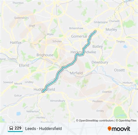 • How long does the 229 bus take from Huddersfield to Leeds? The journey time is usually around one hour to one hour and fifteen minutes. However, this can vary depending on traffic and the time of day. Be sure to check real-time information for the most accurate estimates.
