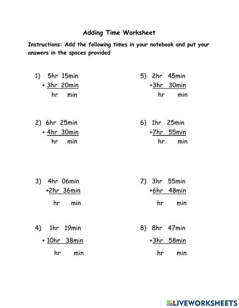 6. Practice, Practice, Practice: The more you do it, the more natural adding time will become. Try adding durations for real-life scenarios – how long until your next appointment? How long will a movie marathon last? The more you practice, the more confident you’ll become.