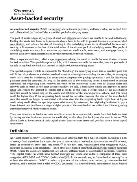 Hey guys! Today, we’re diving deep into the world of asset-backed securities (ABS) , specifically focusing on how they work in Malaysia . You might have heard the term thrown around in financial circles, but what exactly are they, and why should you care? Well, stick around because we’re about to break it all down in a way that’s easy to understand, even if you’re not a finance whiz. We’ll cover what ABS are, how they’re created, the types you’ll find in Malaysia, the benefits they offer, and the risks involved. So, grab a coffee, get comfy, and let’s explore this fascinating corner of the financial market together!
