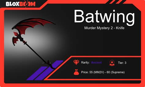 - Value: Obviously, this is a big one. How does the Batwing MM2 value compare to other godly knives? Use reliable sources to compare their current market values.