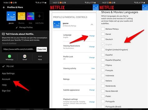 Once you’re on your Account page, scroll down until you see a section for ‘Profile & Parental Controls’ or something similar. Click on the profile you want to adjust the language settings for. (Yes, you can set different language preferences for different profiles on the same account – how cool is that? Perfect for households with diverse tastes!).