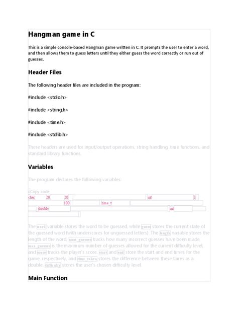 Alright, why should you even bother building a hangman game, you ask? Well, it’s more than just a fun pastime; it’s a stellar learning opportunity. Building a hangman game in C is like a crash course in fundamental programming concepts. You’ll get hands-on experience with variables, data types, control structures (like loops and if-else statements), and functions. Plus, you’ll learn how to handle user input, which is crucial for any interactive program. The hangman game provides a solid foundation for understanding game development . It allows you to grasp the basics before moving on to more complex projects. You will also get familiar with graphics libraries to enhance the game’s visuals. It is a perfect project for beginners to learn and practice these concepts. What’s even better, it’s a relatively simple project, which means you can finish it in a reasonable amount of time, getting the satisfaction of creating a complete game! This gives you a sense of accomplishment and the motivation to keep learning. It is also highly customizable. You can personalize the game with different difficulty levels, themes, or even hints. This lets you get creative and make it your own. And let’s be honest, it is fun! There is something satisfying about guessing the word and saving the poor stick figure from the gallows. By the end of this tutorial, you’ll not only have a working hangman game but also a better understanding of how games are made and a deeper appreciation for the power of C programming. Get ready to embark on this exciting journey, and let’s start coding!