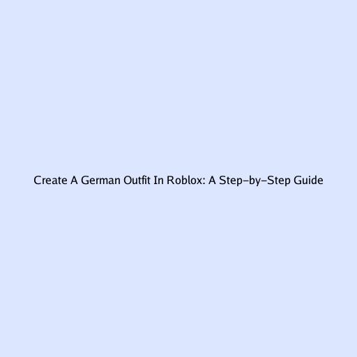 Create a German Outfit in Roblox: A Step-by-Step Guide