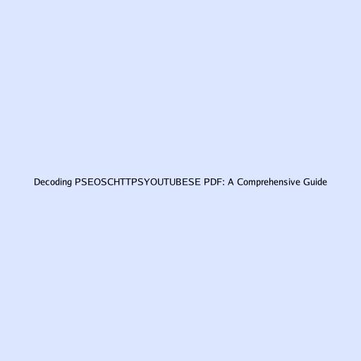 Decoding PSEOSCHTTPSYOUTUBESE PDF: A Comprehensive Guide