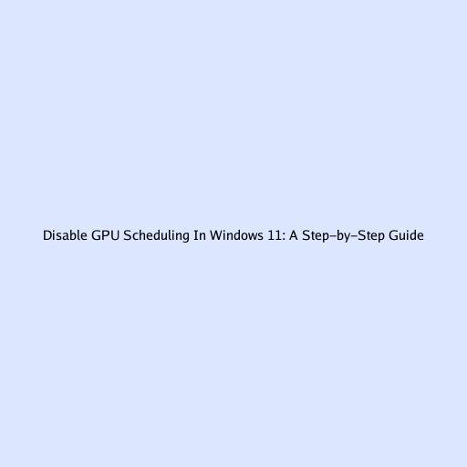 Disable GPU Scheduling In Windows 11: A Step-by-Step Guide