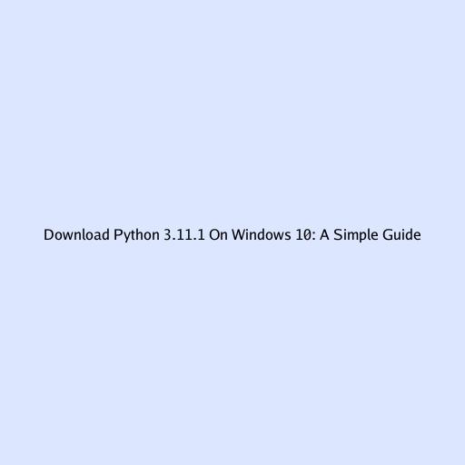 Download Python 3.11.1 On Windows 10: A Simple Guide