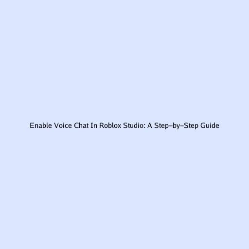 Enable Voice Chat In Roblox Studio: A Step-by-Step Guide