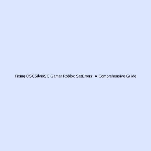 Fixing OSCSilvioSC Gamer Roblox SetErrors: A Comprehensive Guide