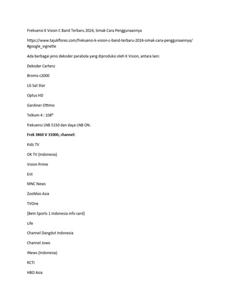 Nah, buat kalian yang penasaran banget sama frekuensi apa aja yang dipake K Vision, banyak kok sumbernya. Biasanya, informasi ini bisa didapat dari forum-forum online yang membahas TV satelit, grup-grup media sosial, atau bahkan website resmi K Vision kalau mereka menyediakan. Kuncinya adalah jangan malas mencari dan memverifikasi informasi yang kalian dapatkan. Karena seperti yang kita tahu, dunia teknologi ini cepat banget berubah, jadi informasi yang paling akurat adalah yang paling baru. So, keep updated ya, guys!