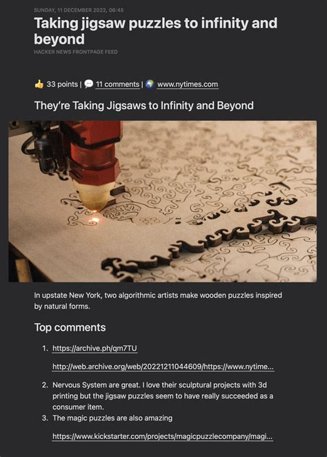 • Link to the Hacker News Page: Another option is to include a link to the Hacker News page for each article. This will allow you to quickly jump to the comments section on the Hacker News website.