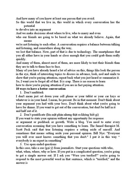 Let’s kick things off with a crucial skill: active listening . Seriously, this is the bedrock of any good conversation, guys. It’s way more than just hearing the words someone is saying. Active listening means you are fully present, engaged, and genuinely trying to understand their perspective. Think about it: when was the last time someone really listened to you? It feels pretty darn good, doesn’t it? So, how do we practice this magical skill? First off, ditch the distractions. Put down your phone, make eye contact (but don’t stare creepily!), and give the person your undivided attention. Nodding and making small verbal cues like “uh-huh” or “I see” shows you’re tracking. But the real magic happens when you ask clarifying questions. Instead of just waiting for your turn to speak, try to understand what they’re saying. Ask things like, “So, if I’m understanding correctly, you’re feeling…?” or “Could you tell me more about…?” This not only shows you care but also helps you avoid misunderstandings. It’s also super important to pay attention to non-verbal cues – their body language, tone of voice, facial expressions. These often speak louder than words! When you practice active listening, you’re not just hearing words; you’re hearing the emotions, the intentions, and the nuances behind them. This deep level of engagement makes the other person feel valued and understood, which is the absolute key to fostering a genuine connection. It’s a game-changer, trust me!