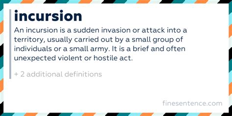 So, what exactly does “incursion” mean? At its core, an incursion refers to an invasion or attack , often sudden and unexpected, into a place or territory. Think of it as an unwelcome entry, a forceful intrusion that disrupts the existing order. The term carries a sense of violation and hostility, suggesting that the incursion is not a friendly visit. It’s an act that challenges boundaries and asserts dominance, whether physical or metaphorical.