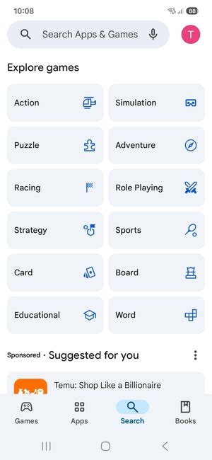 • Alternatively, you can browse through the suggested apps and categories on the home screen.