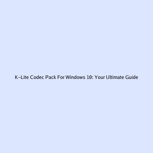 K-Lite Codec Pack for Windows 10: Your Ultimate Guide