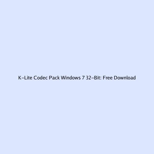 Getting the K-Lite Codec Pack for Windows 7 32-bit: A Step-by-Step Guide