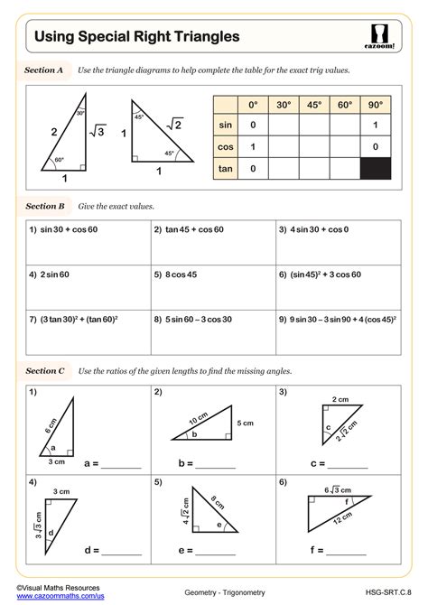 Master Special Right Triangles with Our PDF Worksheet