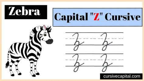 The cursive capital Z begins with a horizontal stroke at the top, moving to the right. It then descends diagonally, forming a sharp angle before continuing with another horizontal stroke at the bottom. The key is to maintain sharp angles and smooth strokes. Practice the angles to ensure they are well-defined and balanced. This letter requires careful attention to detail.