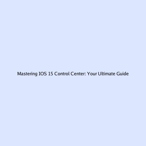Mastering IOS 15 Control Center: Your Ultimate Guide