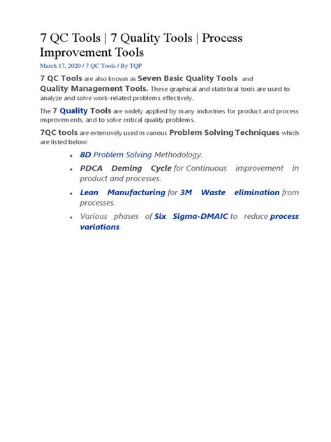 Hey everyone, let’s dive into something super important for anyone looking to boost their quality game: the 7 QC Tools ! Seriously, guys, if you’re even remotely involved in manufacturing, product development, or just making things better , these tools are your absolute best friends. They’re not some fancy, high-tech gizmos; they’re actually pretty straightforward and incredibly powerful. Think of them as your go-to toolkit for problem-solving and continuous improvement. We’re talking about a set of graphical and statistical methods that help you understand, analyze, and ultimately solve quality-related issues. They’ve been around for a while, championed by folks like Kaoru Ishikawa, and they’ve stood the test of time because they work . Whether you’re a seasoned quality engineer or just starting out, getting a solid grasp on these seven tools can make a massive difference in identifying issues, finding root causes, and implementing effective solutions. So, buckle up, because we’re about to break down each of these awesome tools, explain what they are, how they work, and why you absolutely need them in your arsenal. Let’s get this quality party started!