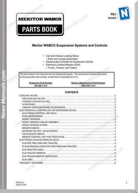 Alright, let’s break down what you can typically find inside a Meritor Wabco manual. These manuals are packed with info about all the vital parts of the system. Knowing what to expect can make navigating the manual much easier.
