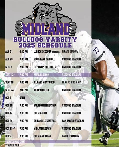 Hey guys! Are you ready for some football? If you’re a fan of Midland football, you’ve come to the right place. This guide is your one-stop shop for everything related to the Midland Football Schedule : We’re talking game times, scores, updates, and all the juicy details you need to stay in the loop. Whether you’re a die-hard supporter or just getting into the game, we’ve got you covered. Let’s dive right in and get you prepped for the season! This article will be your comprehensive guide, offering insights into the Midland Football Schedule , game day experiences, and everything else you need to know. Get ready to mark your calendars, because it’s going to be an awesome season!