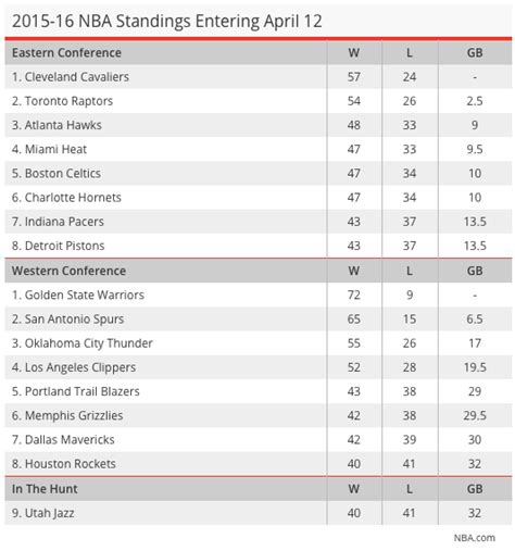 As the regular season wound down, the playoff picture in both conferences became clearer, setting the stage for an exciting postseason. In the East, the Cleveland Cavaliers secured the top seed, a position they held with authority for much of the season. Their dominance in the regular season gave them home-court advantage throughout the Eastern Conference playoffs, a crucial edge. Following closely behind were the Toronto Raptors , who cemented their status as the second-best team in the East, also earning valuable home-court advantage in the early rounds. Teams like the Miami Heat , Atlanta Hawks , Boston Celtics , Charlotte Hornets , Indiana Pacers , and Detroit Pistons battled it out for the remaining playoff spots. The parity in the middle of the Eastern Conference standings was notable, with several teams separated by just a few games. This closeness meant that late-season matchups between these clubs often had significant implications for seeding and playoff qualification. The race for the final few spots was particularly intense, with teams making strong pushes in the closing weeks of the season. The distinction between making the playoffs and missing them was razor-thin for several franchises, adding a layer of drama to the end of the regular season. The Eastern Conference playoff bracket was thus set, promising intriguing matchups and a clear path for the top contenders to vie for a chance at the NBA Finals. It was a conference where established stars and rising teams were all vying for supremacy, creating a compelling narrative arc as the season progressed towards its climax. The playoffs were anticipated to be a true test of endurance and skill for all involved.