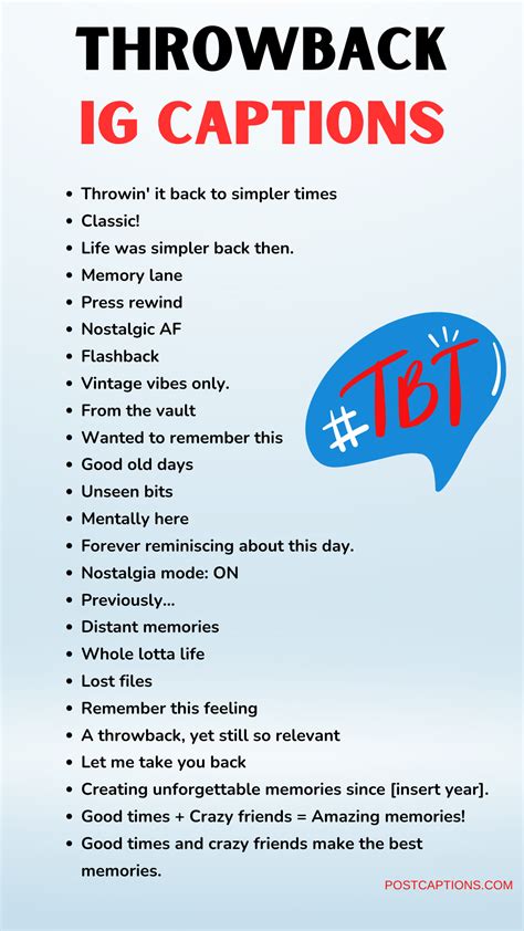 By following these tips, you can craft nostalgic captions that are both personal and engaging. Remember, the goal is to create a connection with your audience and invite them to share their own memories. So, go ahead, let your creativity flow, and let the power of nostalgia work its magic on your social media feed!