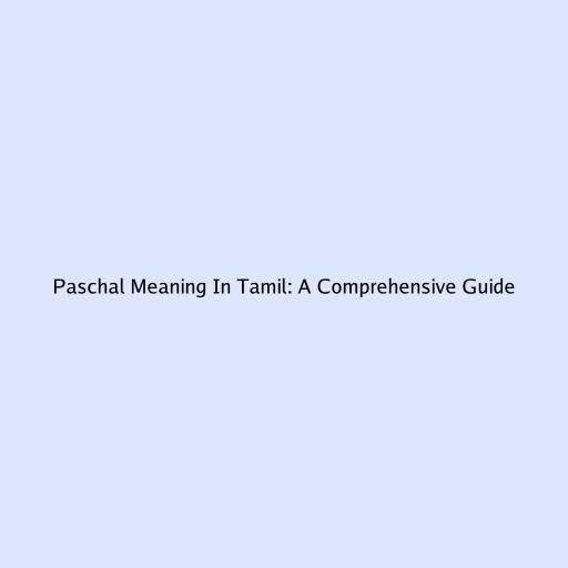 Paschal Meaning in Tamil: A Comprehensive Guide
