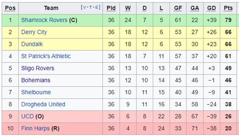 After points, goal difference (GD) becomes important. This is calculated by subtracting the number of goals conceded from the number of goals scored. A higher goal difference is generally favorable. Additionally, goals scored (GF) and goals conceded (GA) are also displayed. In cases of a tie on points and goal difference, the team with more goals scored will usually be ranked higher, and sometimes, head-to-head records between the tied teams are considered. Understanding these elements is essential for interpreting the table and understanding how each team is performing. Whether you are tracking your favorite team’s progress or analyzing the league for your own entertainment, knowing how the Premier Division Ireland table operates will certainly enhance your experience.