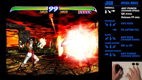 Now, let’s get down to business with Jago’s special moves on the PS3. These are the moves that define his offensive pressure and provide the tools for his devastating combos. First up, we have the End Turn (Quarter-circle forward + Punch). This is Jago’s projectile. It’s not the fastest projectile out there, but it’s great for controlling space, forcing your opponent to jump or block, and setting up your approach. You can charge it up for a larger, more damaging version, which is fantastic for punishing distant opponents or catching them off guard. Mastering the timing and spacing of End Turn is key to Jago’s zoning game, allowing you to dictate the pace of the match. Next is Dragon’s Breath (Down, Down + Punch). This is Jago’s classic uppercut, his invincible anti-air and combo ender. It has multiple strengths depending on the button pressed, with the heavy punch version being fully invincible on startup, making it a fantastic reversal option to escape pressure or punish predictable jump-ins. It’s also a primary tool for ending your combos on a high note, dealing significant damage and launching the opponent for potential juggle opportunities. Don’t underestimate its power! Then we have Tiger Fury (Back, Forward + Punch). This is a dashing slash attack that moves Jago forward. It comes in different strengths, with the heavy punch version covering more distance and dealing more damage. Tiger Fury is excellent for closing the gap, punishing whiffed attacks, and extending combos. It can be used to surprise opponents who are expecting you to play defensively. Finally, there’s Laser Sword (Quarter-circle back + Kick). This is Jago’s overhead attack, a crucial tool for breaking an opponent’s guard. The different kick strengths affect its speed and range. Since most of Jago’s offense is mid-hitting, Laser Sword provides a necessary mix-up to keep your opponent guessing. Combining these specials effectively is what separates a good Jago player from a great one. You’ll be using them in conjunction with your normal attacks and combos to create relentless pressure and devastating damage. Remember, practice makes perfect, especially when it comes to executing these moves consistently under pressure. We’ll explore how to chain these into combos shortly.