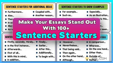 So, why should you even bother thinking about sentence starters? Well, they’re more important than you might think! Think of sentence starters as the launchpad for your ideas. A good sentence starter can grab your reader’s attention, set the tone for your writing, and smoothly guide them into your argument or explanation. Using a variety of sentence starters can also make your writing more engaging and less monotonous. Imagine reading a paragraph where every single sentence begins with “The.” It’s a bit of a snooze-fest, right? By mixing things up, you keep your reader interested and make your writing more dynamic. Sentence starters also help you to organize your thoughts and create a logical flow in your writing. They act as signposts, indicating the relationship between ideas and guiding the reader through your argument. Plus, having a few go-to sentence starters in your back pocket can seriously combat writer’s block. When you’re stuck, just pick a starter and see where it takes you! It’s like a little jumpstart for your brain. Ultimately, mastering sentence starters is about mastering the art of clear, engaging, and effective communication. It’s a skill that will benefit you in all aspects of your life, from academic writing to professional correspondence to everyday conversations.