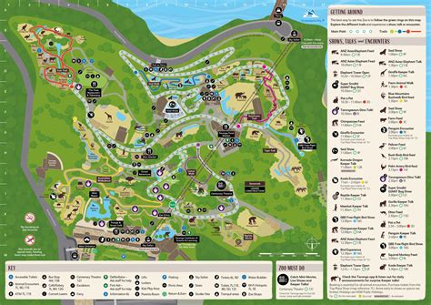 Now, let’s talk route planning . Look at the map and see how your prioritized exhibits are located relative to each other. Can you group nearby animals together to create an efficient walking route? For example, if you want to see the giraffes and then the zebras, check if they are in the same general area. This minimizes unnecessary walking and saves your energy for more exploring. The map shows the main pathways, so you can plot a logical flow from one area to the next. Consider the show schedule too! Check the times for keeper talks, feeding sessions, and animal presentations (like the Seal Show or Bird of Prey flight demonstrations). Factor these into your route. You don’t want to be halfway across the zoo when your favorite show is starting!