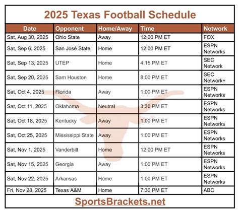 Alright, let’s dive deeper into what makes up the Texas football schedule . It’s not just about knowing who they play, but when and where . Understanding these key components will help you become a true schedule savant, ready to discuss the ins and outs with anyone at the tailgate.