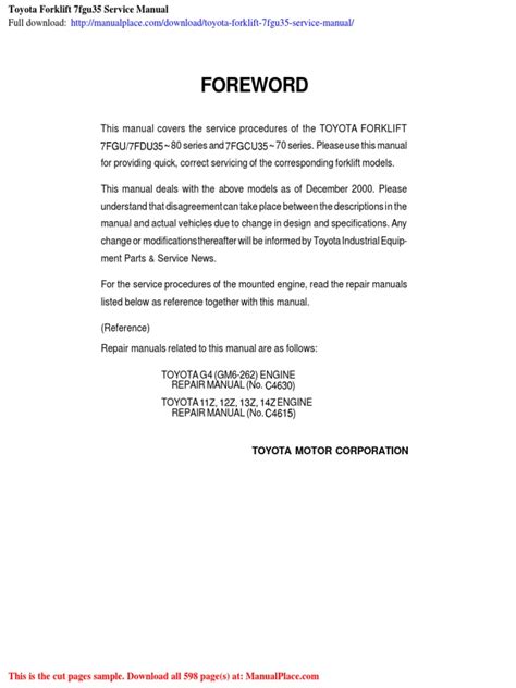 Hey guys! So, you’ve got yourself a Toyota 7FGU35 forklift, huh? Awesome choice! These bad boys are workhorses, and to keep yours running smoothly and safely, you absolutely need the Toyota 7FGU35 operator manual . Think of it as your forklift’s bible, your go-to guide for everything from basic operation to troubleshooting those pesky little issues. Without it, you’re basically flying blind, and trust me, that’s not a good look when you’re operating heavy machinery. We’re talking about potential downtime, safety hazards, and just a general headache that could easily be avoided. This manual isn’t just a bunch of dry text; it’s packed with crucial information that will empower you to use your forklift to its full potential and, more importantly, keep yourself and everyone around you safe.