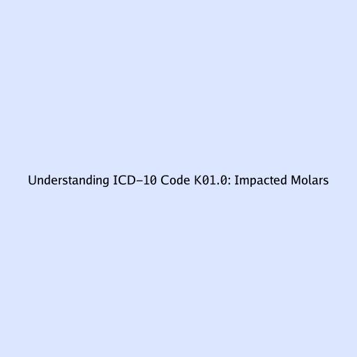 Hey everyone! Today, we’re diving deep into the nitty-gritty of dental coding, specifically focusing on ICD-10 code K01.0 . This code might sound a bit technical, but trust me, understanding it is super important, especially if you’re dealing with dental issues or working within the healthcare field. So, what exactly is K01.0 all about? It refers to an impacted molar , a common yet often troublesome dental condition. When we talk about impacted molars, we’re essentially talking about teeth that haven’t erupted properly through the gums. They’re stuck, unable to break through and take their rightful place in your smile. This can happen for a bunch of reasons, but the result is always the same: a tooth that’s causing problems. Molars, being the big chewing machines at the back of your mouth, are particularly prone to impaction. Their late eruption timeline and the limited space they often have to navigate in the jaw make them prime candidates for getting stuck. Understanding ICD-10 code K01.0 is crucial because it provides a standardized way for healthcare professionals to classify and document this specific dental issue. This standardization is vital for accurate record-keeping, billing, and ultimately, for ensuring patients receive the correct treatment. It’s like having a universal language for dentists and insurance companies to communicate about what’s going on in your mouth. Without these codes, things would be way more chaotic!