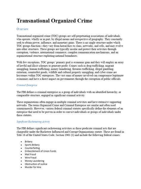 Hey guys, let’s dive into the fascinating and often terrifying world of transnational criminal organizations (TCOs) . These are not your local neighborhood gangs; we’re talking about sophisticated, globe-trotting outfits that operate across borders, engaging in all sorts of illicit activities. Think about it: they’re like the multinational corporations of crime, but instead of selling you the latest gadget, they’re peddling drugs, weapons, trafficked humans, and engaging in cybercrime and money laundering on a massive scale. The sheer audacity and complexity of their operations make them a significant challenge for law enforcement agencies worldwide. Understanding TCOs is crucial because their tentacles reach into so many aspects of our lives, from the drugs that fuel addiction to the illegal arms that destabilize regions, and even the financial systems that underpin our global economy. They exploit vulnerabilities in international law, weak governance, and corruption to further their agendas. Their adaptability is astounding; they can shift their operations, find new markets, and exploit emerging technologies faster than many governments can react. This isn’t just about street-level crime; it’s about high-stakes, high-profit operations that have a profound impact on global security and human well-being. We’re talking about entities that can rival the economic power of small nations, with intricate networks and a ruthless drive for profit that knows no boundaries. Their existence is a constant reminder of the interconnectedness of our world and the challenges that come with it. So, buckle up, as we unpack what makes these organizations tick and why they’re such a persistent global threat.