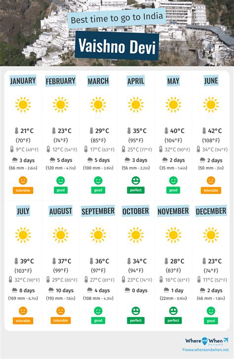 Hey guys! Planning a spiritual journey to the holy shrine of Vaishno Devi ? That’s awesome! One of the most crucial things to sort out before you pack your bags is the Jammu Vaishno Devi weather . Knowing what kind of weather to expect will seriously make your trip smoother, safer, and way more enjoyable. This holy pilgrimage takes place in the Trikuta Mountains of Jammu, and believe me, the weather there can change on a dime! Whether you’re trekking up or just chilling around the base, understanding the seasonal patterns is key. We’re talking about everything from scorching summers to freezing winters, plus the monsoon season that can bring its own set of challenges. So, let’s dive deep into what the weather gods have in store for you throughout the year and figure out the absolute best time to make your pilgrimage. Get ready to get all the deets on temperatures, rainfall, and what to pack, so you can focus on what truly matters – your spiritual quest. We’ll break down each season so you can make an informed decision, ensuring your visit is as comfortable and blessed as possible. Stick around, and you’ll be a weather expert for your Vaishno Devi trip in no time!