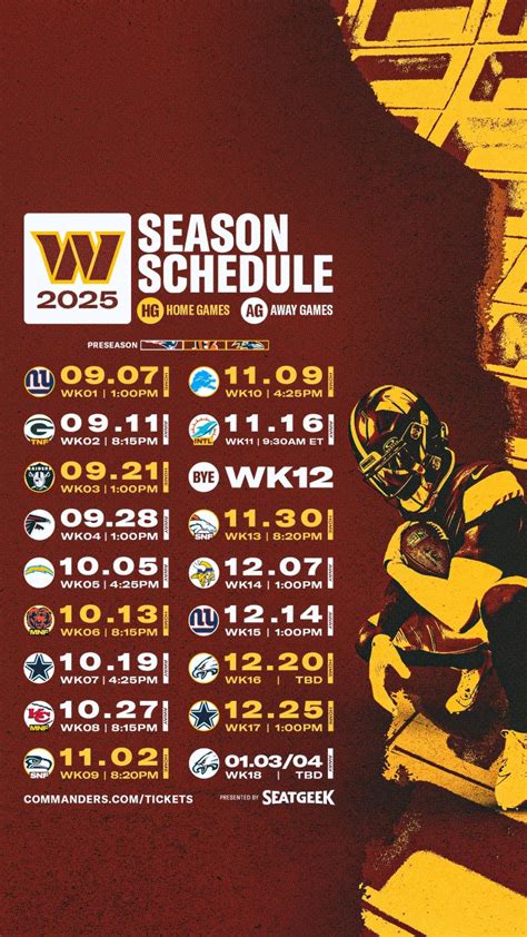 What’s up, football fanatics! Get ready to mark your calendars because the Washington Commanders 2025 NFL schedule is officially here, and it’s packed with must-see matchups. For all you die-hard Commanders fans out there, this is your ultimate guide to the upcoming season. We’re talking about the full slate of games, the big rivalries, and those crucial divisional battles that always keep us on the edge of our seats. Whether you’re planning your tailgates, figuring out your watch parties, or just want to strategize about the season ahead, this schedule breakdown is for you. Let’s dive deep into what the Commanders have in store for us in 2025 and get hyped for what promises to be an electrifying season of NFL action!
