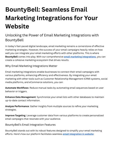 • Integration with Other Tools: Your webmailout platform should seamlessly integrate with your other marketing tools, such as your CRM, e-commerce platform, and social media channels. This allows you to centralize your marketing efforts and create a more cohesive customer experience.