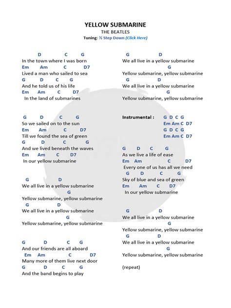 Hey guys! Are you ready to dive into the musical depths of one of the most iconic songs ever written? Today, we’re going to explore the Yellow Submarine chords , making it super easy for beginners to strum along and sing their hearts out. This classic tune by The Beatles is not only fun but also surprisingly simple to play. So grab your guitar, ukulele, or any other chord-friendly instrument, and let’s get started on this magical musical journey!