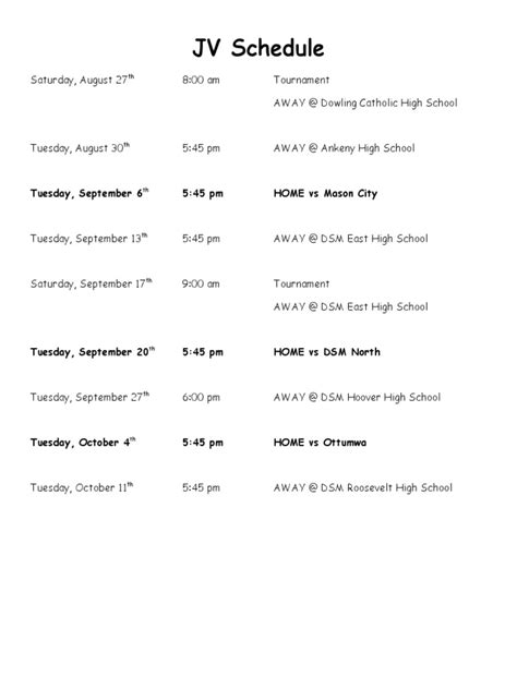For those who prefer a more tangible approach, create a physical schedule. Print out the JV football schedule and post it on your fridge or bulletin board. Use different colors to highlight important dates or events. This can be a great visual reminder for the whole family.